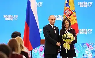 Вручение Ордена Дружбы. В. В. Путин и Елена - Заслуженный мастер спорта России (10 февраля 2014 года)[65]