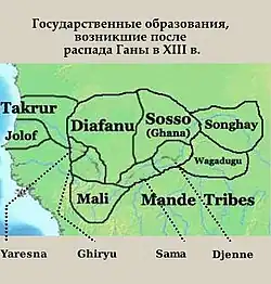 Располагалось на территории современных Мали, Сенегала и Мавритании. Крупнейшие города — Кумби-Сале, Аудагост.