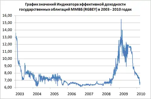 В качестве показателей ценовой динамики рынка государственных облигаций (ГКО-ОФЗ) ММВБ осуществляет расчет Индексов государственных облигаций России (MCX: RGBI) и индикаторов доходности государственных облигаций России (MCX: RGBITR), далее — Индикаторы доходности.