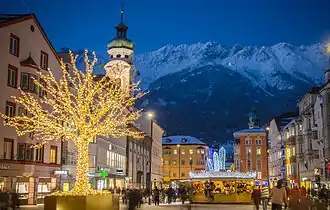 И́нсбрук (нем. Innsbruck, бав. Innschbruck, тирольск. Innschpruckh) — город в Австрии, административный центр федеральной земли Тироль. Расположен на западе страны на берегу реки Инн. Площадь города составляет 104,91 км²[1], население — 131 059 человек (1 января 2021)[2], плотность населения — 1258 чел./км². Крупный промышленный, туристический, культурный и спортивный центр Австрии.