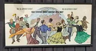 «Мы за дружбу и мир! Наш горячий привет облетает весь мир!», советский плакат