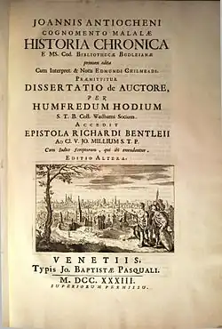 - Иоанн Малала. «Хронография». Издание Венеция. 1733 год. греческий текст с латинским переводом.