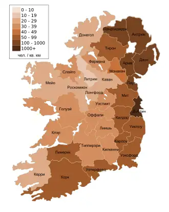 По результатам переписи 2016 года, население Ирландии в апреле 2016 года составляло 4 761 865 человек, что на 173 613 человек (3,8 %) больше, чем в апреле 2011 года[11], бо́льшая часть из которых живёт на восточном побережье. Важнейшие города — Дублин и Белфаст.