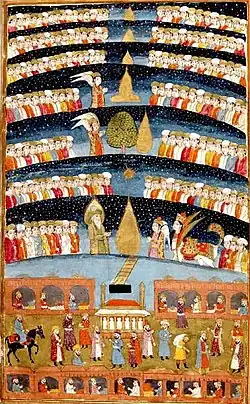 Вера в бессмертие души предполагает существование особой субстанции (души), покидающей тело в момент смерти, и пребывающей до дня воскресения в определённом месте, которое носит название барзах. Согласно исламскому вероучению, неизбежно наступит «конец света», сроки наступления которого известны только Богу. После наступления конца света совершится воскрешение всех умерших для последнего справедливого Божьего суда. На суде Бог рассмотрит и по достоинству оценит все поступки каждого человека, после чего человек будет либо мучиться в аду, либо жить радостной жизнью в раю[4]. В отличие от христианства, ислам считает, что каждый человек рождается безгрешным и на Страшном Суде он будет отвечать только за свои поступки.