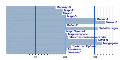 Mars Global Surveyor, 1996 год. Искусственный спутник Марса (время работы 1996—2004 гг.).