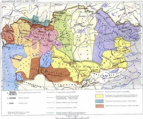 - ↑ Население Казахстана в 1917-1939 гг. · Социально-демографические процессы в Казахстане (1897-1992) · Казахстан в составе Советского Союза · История Казахстана · Портал «История Казахстана». e-history.kz. Дата обращения: 12 ноября 2019. Архивировано 3 апреля 2019 года.