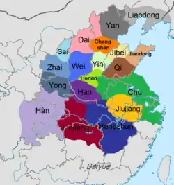 В период Чжаньго на территории Китая сосуществовало семь крупнейших царств — Вэй, Чжао и Хань (ранее все три входили в царство Цзинь), Цинь, Ци, Янь и Чу. Постепенно в результате ожесточённого соперничества верх стало одерживать самое западное — Цинь. Присоединив одно за другим соседние царства, в 221 до н. э. правитель Цинь — будущий император Цинь Ши Хуан Ди — объединил весь Китай под своей властью.