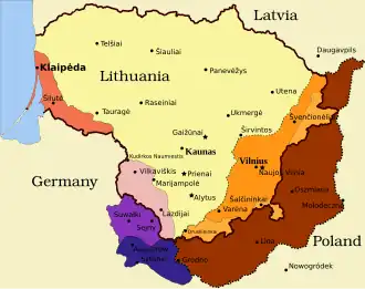 В 1920—1922 годах Литовское государство было признано международным сообществом. В то же время Вильна и весь Виленский край, населённый литовцами, белорусами, поляками и евреями, в период с октября 1920 по март 1922 года представляли собой марионеточное образование — Срединную Литву, — а затем до сентября 1939 года входили в состав Польши в качестве Виленского воеводства.