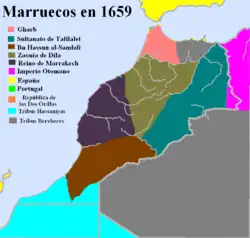 После смерти Ахмада, могущественнейшего из шарифов (в 1603 году), государство стало приходить в упадок вследствие постоянных внутренних войн, так что Мулай Рашиду ибн Шерифу, потомку Али и Фатимы, легко было низвергнуть, около середины XVII века, династию первых шерифов и основать новую, до сих пор правящую династию Алидов, также называемую Хозеини, Филалиды или Алауиты. Наиболее известен из них Мулей-Исмаил, правивший с 1672 по 1727 г., как величайший деспот. При преемниках его господствовали междоусобия и раздоры из-за престола, приводившие страну всё более к упадку, до вступления на престол в 1757 г. Мулей-Сулеймана, отличавшегося мягкостью и стремлением ввести европейскую культуру.