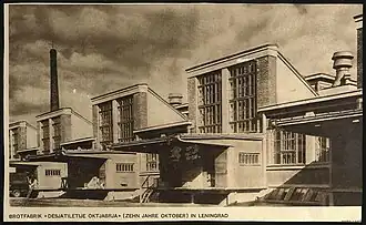 Строительство первых постреволюционных и ещё пока редких участков началось после 1921 года[9]. В этот период начала предлагаться идея квартала-участка, которая в итоге станет частью новой градостроительной традиции Ленинграда на протяжении XX века[9]. Советская архитектура раннего поколения прежде всего удовлетворяла жилищные требования, но во внешнем оформлении была выраженно строгой и экономной в противовес дореволюционным зданиям[9]. Строительство первых рабочих кварталов или жилмассивов нового типа началось с 1924 года — начали строиться Серафимовский городок, Тракторная улица, улица Ткачей, Палевский городок[9]. В центре города повсеместно надстраивали имевшиеся дома новыми верхними этажами[9]. Первые жилмассивы были выдержаны в стиле конструктивизма, отражавшие идеи социального строя — устремлённость в будущее и спартанский быт[32]. Зданиям общежитий были свойственны геометрически чёткие фасады, динамичные конструкции и рациональное устройство скромных квартир[32].