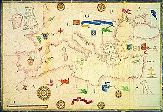 На протяжении нескольких веков Средиземное море было по сути «Римским озером» — со всех сторон его окружала империя римлян. Одной частью этой империи была Иудея, и со временем религия, основанная здесь, христианство, распространилась по всей империи и в конечном счёте стала её официальным вероисповеданием. Римская империя рухнула в V веке нашей эры, хотя восток вновь обрёл силу в лице Византийской империи, сформировавшейся из восточной половины Римской империи. Западная часть империи, Галлия, Иберия и Магриб были подвержены вторжению германцев и кочующих племён из Евразийской степи. Эти завоеватели вскоре стали оседлыми и усвоили много местных обычаев, сформировав множество маленьких воюющих королевств.