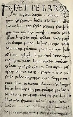 На древнеанглийском языке были впервые записаны рунические тексты, называемые Англосаксонскими рунами (известны как рунический алфавит), позже они были заменены на Древнеанглийский латинский алфавит. На древнеанглийском языке писались многие произведения времён Альфреда Великого. Самой известной сохранившейся работой на древнеанглийском языке является эпическая поэма «Беовульф», сочинённая неизвестным поэтом.