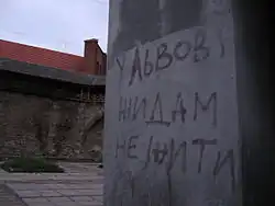 - ↑ «Украина криминальная», 29 ноября 2007, 14:15. Архивировано 20 сентября 2011 года.. Президент Всеукраинского еврейского конгресса Вадим Рабинович прокомментировал это так: «Вы знаете, это страшные вещи… Меня возмущает тот факт, что сотни людей, слышавших заявление лидера запорожского КУН, стыдливо прятали и прячут глаза, в которых читается лишь страх. Чего они боятся?.. Неужели мы боимся подонков, которые, прикрываясь псевдонационалистическими флагами и идеями, ведут нашу страну в пропасть?»