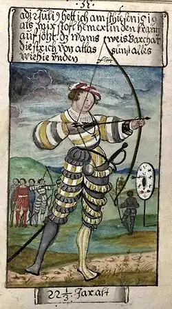 Середина XIV века знаменует собой появление «моды» в Европе[26]. С этого периода европейская мода значительно меняется и приобретает яркие отличительные черты от других цивилизаций и периодов[27]. Появляется более приталенный крой по фигуре, дополненный шнуровками и пуговицами[28]. Для мужчин в моду вошла одежда mi-parti, сшитая из двух контрастных тканей[29].