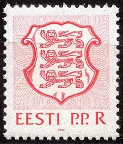 15 августа 1940 года, уже после вхождения Эстонской ССР в состав СССР, была выпущена последняя марка этого периода с надписью «Eesti». Это была миниатюра с изображением трёх леопардов с герба Эстонской Республики, отпечатанная типографским способом на серой мелованной бумаге с синевато-зелёным сетчатым фоном. Она была в обращении до 1 января 1941 года[7].