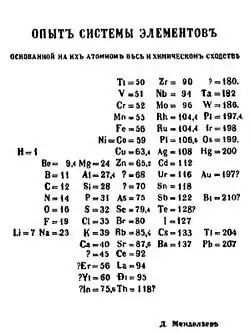 - ↑ Менделеев Д. И. Соотношение свойств с атомным весом элементов // Журнал Русского химического общества. 1869. Т. 1. С. 60—67.