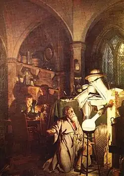 В Европе в мифологию и символику алхимии были внедрены элементы христианской мифологии (Петрус Бонус, Николай Фламель); в целом для европейской алхимии мистические элементы оказались значительно более характерны, нежели для арабской. Мистицизм и закрытость европейской алхимии породили значительное число мошенников от алхимии; уже Данте Алигьери в «Божественной комедии» поместил в десятый ров восьмого круга Ада тех, кто «алхимией подделывал металлы»[13]. Характерной чертой европейской алхимии стало её двусмысленное положение в обществе. Как церковные, так и светские власти неоднократно запрещали[14] занятия алхимией; в то же время алхимия процветала и в монастырях, и при королевских дворах.