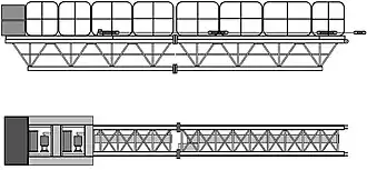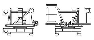 Консоль балочного типа, треугольной формы, состоящая из двух секций. Два верхних пояса выполнены из уголков, а нижний пояс, связи и раскосы — трубчатые. Стыки соединяются между собой фланцами. Элементы расчала консоли унифицированы с расчалом стрелы. На горизонтальной плоскости установлены две грузовые лебёдки и балластные блоки, доступ к которым осуществляется при помощи проложенного ограждённого настила и частично — поворотного, выполненного на шарнирах — над монтажной стойкой[2].