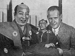 - ↑ В гастрольные программы выступлений в 1928 году вошли спектакли «Бантё Сараясики», «Мусумэ Додзёдзи», «Наруками», «Самбасо», «Сюдзэндзи моногатари», «Торибэяма синдзю», «Тюсингура»[39].