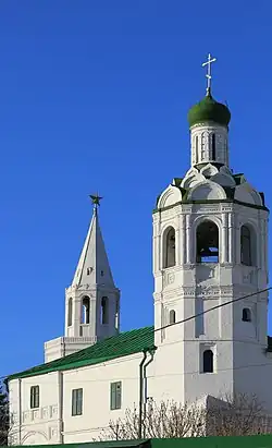 Из построек тех лет сохранилась 5-купольная бесстолпная Введенская церковь с типичным для XVII в. декором (наличники из фигурного кирпича) и невысокая восьмигранная колокольня с одним ярусом звона, увенчанным 3 рядами нарядных кокошников. К сожалению, не сохранился главный храм тех же лет — Иоанно-Предтеченский собор, представлявший значительную архитектурную ценность благодаря своей редкой трёхшатровой форме (по типу «Дивной» Успенской церкви в Угличе). В XIX в. он был разобран за ветхостью и в 1887—1894 гг. заменён новым, тоже трёхшатровым, собором (более крупных размеров), но и этот собор снесён в 1930-е гг. В остальном ансамбль сохранился почти без изменений как один из ценных архитектурных комплексов, определяющих облик центра Казани.
