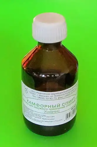 - Камфорный спирт (Spiritus Camphoratus): камфоры — 10 г, спирта 90%-го — 70 мл, воды — до 100 мл. Применяют наружно для растираний и предупреждения пролежней.
