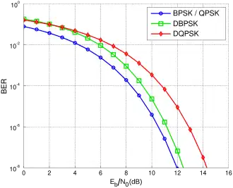 В случае передачи дискретных сообщений (цифровые системы), количественно помехоустойчивость можно характеризовать вероятностью ошибок (в простейшем случае битов) при заданном отношении сигнал/шум, то есть отношением средних мощностей сигнала и помехи в полосе частот, занимаемой сигналом. Также помехоустойчивость можно характеризовать требуемым отношением средних мощностей сигнала и помехи на входе приёмника системы, при котором обеспечивается заданная вероятности ошибки[12]. Также вместо отношения сигнал/шум можно использовать величину Eb/N0, то есть отношение энергии сигнала, затрачиваемой на передачу одного бита, к спектральной плотности белого шума.