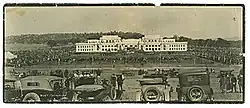 Федеральное правительство переехало в Канберру 9 мая 1927 года, в день открытия временного здания парламента страны[57][58]. Премьер-министр Австралии, Стэнли Брюс (англ. Stanley Bruce)[59], официально поселился в своей резиденции за несколько дней до этого[60]. Запланированное развитие города значительно замедлилось в годы Великой депрессии 1930-х годов и во время Второй мировой войны[61]. Некоторые проекты, например, здания католического и англиканского соборов, так и не были реализованы.