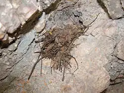 Каньонный длинноклювый крапивник обычно гнездится на скальных стенах, утесах, обнажениях; некоторые гнезда прикрепляются с помощью палок и сучьев к граням скал в пещерах. Гнезда часто защищены выступающей скальной полкой, и часто находятся в небольшой расщелине или отверстии, которое скрывает их от посторонних глаз. Может также строить гнезда в сооружениях, созданных человеком, таких как шахтные стволы, заборы, веранды, амбары и иногда искусственные гнёзда[5].