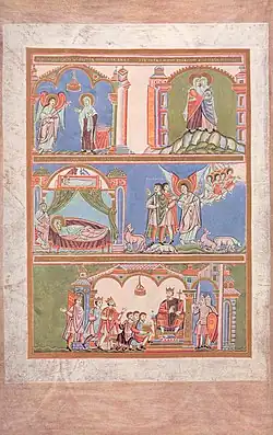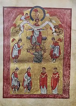 - ↑ Золотой кодекс из Эхтернаха (1030—1050, Эхтернах / Нюрнберг, Германский национальный музей, Hs. 156142) Архивная копия от 19 декабря 2019 на Wayback Machine // Искусствовед.ру.
