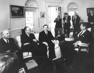 Громыко и Добрынин на приёме у Кеннеди уверяют его, что на Кубе нет наступательного оружия СССР