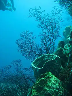 В Атлантическом океане находятся около 9 % коралловых рифов мира. Их площадь составляет 50 тыс. км², причём бо́льшая часть находится у берегов Карибских островов и Центральной Америки[48]. Одним из наиболее изучаемых в последнее время явлений в регионе стало обесцвечивание кораллов. До 1980-х годов в Карибском море были широко распространены мадрепоровые кораллы, за последующие 20 лет по антропогенным и природным причинам их популяция уменьшилась, а количество морских водорослей увеличилось. В 1983 году этот процесс обострился массовой гибелью морских ежей, которые питаются водорослями[24]. Научные исследования рифов проводились с 1995 по 1998 год у побережья Белиза на крупнейшем в Северном полушарии коралловом барьерном рифе, а также в 2005 году у рифов в восточной части моря[3]. Потепление Карибского моря (в результате глобального изменения климата[3]) ставит под угрозу хрупкие экосистемы коралловых рифов — длительное превышение температурой воды значения 29 °C приводит к гибели микроскопических водорослей зооксантеллы. Эти растения дают кораллам пищу и цвет, поэтому их гибель приводит к обесцвечиванию кораллов и нарушению всей экосистемы рифов.