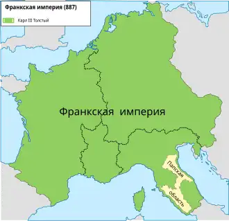 Карл III Толстый (нем. Karl der Dicke, фр. Charles le Gros; 13 июня 839, Бавария — 13 января 888) — король Восточно-Франкского королевства в 876—887 годах (до 882 года — король Алемании и Реции), король Италии в 879—887 годах, франкский император в 881—887 годах, король Лотарингии (Карл II) в 882—887 годах, король Западно-Франкского королевства в 884—887 годах. Представитель династии Каролингов.