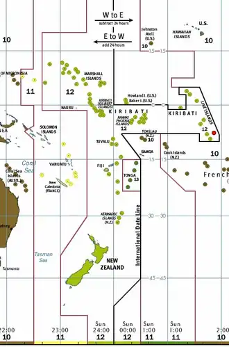 - ↑ Kristof, Nicholas D. Tiny Island's Date-Line Jog in Race for Millennium. New York Times (23 марта 1997). Дата обращения: 18 июня 2007. Архивировано 13 июля 2020 года.