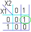 При заполнении карты на пересечении строки и столбца проставляется соответствующее значение из таблицы истинности — 0 или 1. После того как карта заполнена, приступают к минимизации.