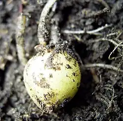 - ↑ Paluchowska, Paulina; Sliwka, Jadwiga; Yin, Zhimin (2022). Late blight resistance genes in potato breeding. Planta. 255 (6). Springer Science and Business Media LLC: 127. Bibcode:2022Plant.255..127P. doi:10.1007/s00425-022-03910-6. eISSN 1432-2048. ISSN 0032-0935. PMC 9110483. PMID 35576021.