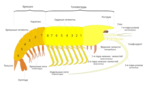 В карцинологии для описания ракообразных используются специальные термины, например[2][3]: