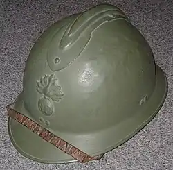Отличительной чертой каски, использовавшейся французской армией, являлось наличие фронтальной эмблемы, состоявшей из литер RF (République Française — Французская Республика) и символа, соответствовавшего конкретному роду войск.