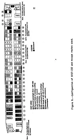 В катастрофе погибли 14 человек — 2 члена экипажа (стюардессы Дикси Данн и Розилин Марр) и 12 пассажиров; среди погибших пассажиров был один с места 29C, который сумел выбраться из самолёта, но после вновь вернулся в салон, чтобы, вероятно, помочь жене и другим пассажирам, в результате чего получил тяжёлые ожоги и умер через 11 дней[9]. Ранения получили 76 человек — все 5 членов экипажа и 21 пассажир получили тяжёлые травмы, 50 пассажиров получили средние или лёгкие травмы. Остальные 18 пассажиров не пострадали.
