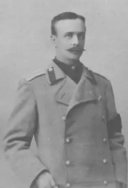 Вступил в военную службу в 1881 году, был командирован в 1-й гусарский Сумский полк. В 1882 году поступил юнкером в Кавалергардский полк, в 1883 выдержал офицерский экзамен при 2-м военном Константиновском училище и был произведен корнетом того же полка. Позднее окончил Офицерскую кавалерийскую школу (1891).