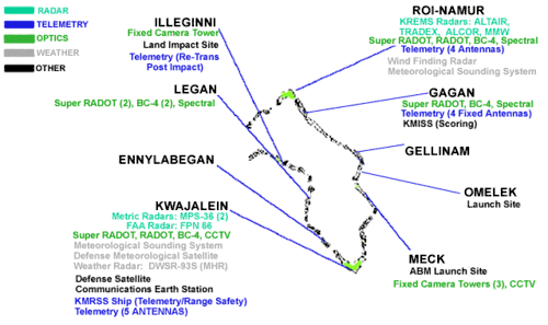 - Остров Мек — часть атолла, известен как военный полигон, особенно в связи с испытаниями ракет Спринт.