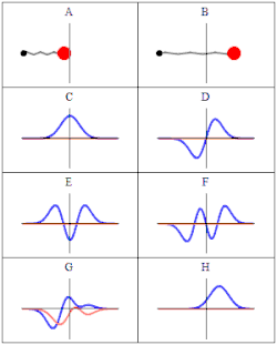 Уровни энергии и функции состояния квантового гармонического осциллятора можно определить либо путём непосредственного решения уравнения Шрёдингера, что не является тривиальной задачей[125], либо с помощью более элегантного «лестничного метода», впервые предложенного Полем Дираком[126]. Собственные состояния квантового гармонического осциллятора задаются как[127]