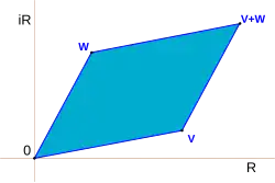 Сложение и умножение — обычные операции в теории комплексных чисел, они представлены на рисунках. Сумма находится следующим образом. Пусть начало второй стрелки будет в конце первой. Сумма представляет собой третью стрелку, идущую прямо от начала первой до конца второй. Произведение двух стрелок — это стрелка, длина которой равна произведению двух длин. Направление произведения определяется путём сложения углов, на которые были повёрнуты эти стрелки относительно опорного направления.