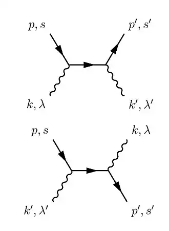 На их основе непосредственно вычисляются амплитуды вероятностей. Примером может служить комптоновское рассеяние, когда электрон и фотон подвергаются упругому рассеянию. В данном случае диаграммы Фейнмана[24]:158–159