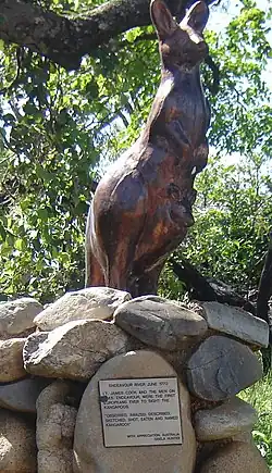 памятник в честь открытия кенгуру для европейцев экспедицией Джеймса Кука в городе Куктаун, в районе которого произошла первая встреча европейцев с этими животными