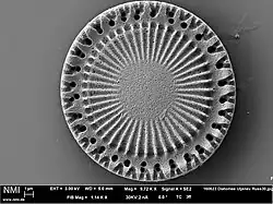Диатомит — рыхлые или сцементированные кремнистые отложения, осадочная горная порода белого, светло-серого или желтоватого цвета, состоящая более чем на 50 % из панцирей диатомей[1][2].