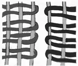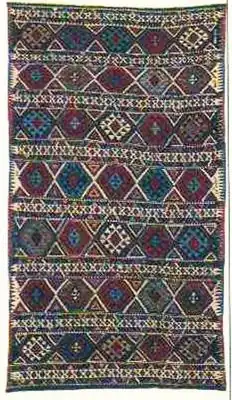 - ↑ Безворсовый, создаётся плотным полотняным застилом цветных утков, скрывающих нити основы. По своей технике, это похоже на плетение корзины или плетня, где вертикально расположенная лоза — это хлопковые нити основы, а горизонтально — уток (цветная шерстяная нить). Но в отличие от лозы, шерстяная нить очень плотно прилегает друг к другу и полностью скрывает от вашего взора нити основы, образуя шерстяное полотно с цветным орнаментом.