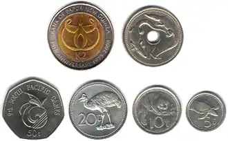 | Банкноты | 2, 5, 10, 20, 50, 100 кина | ||||
