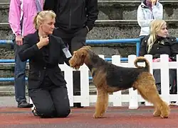- Хе́ндлер (выводчик[50]) — человек, представляющий собаку на выставках в экстерьерном ринге, а также на спортивных соревнованиях[2] (илл.).