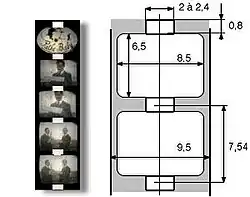- ↑ Выпускалась также 64-мм киноплёнка для печати четырёх 16-мм фильмокопий