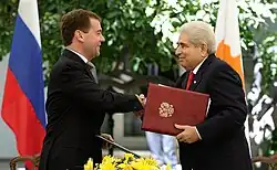 1. 1 2 3 4 Российско-кипрские отношения (справка). МИД РФ (5 октября 2011). Дата обращения: 5 апреля 2015. Архивировано 26 февраля 2015 года.